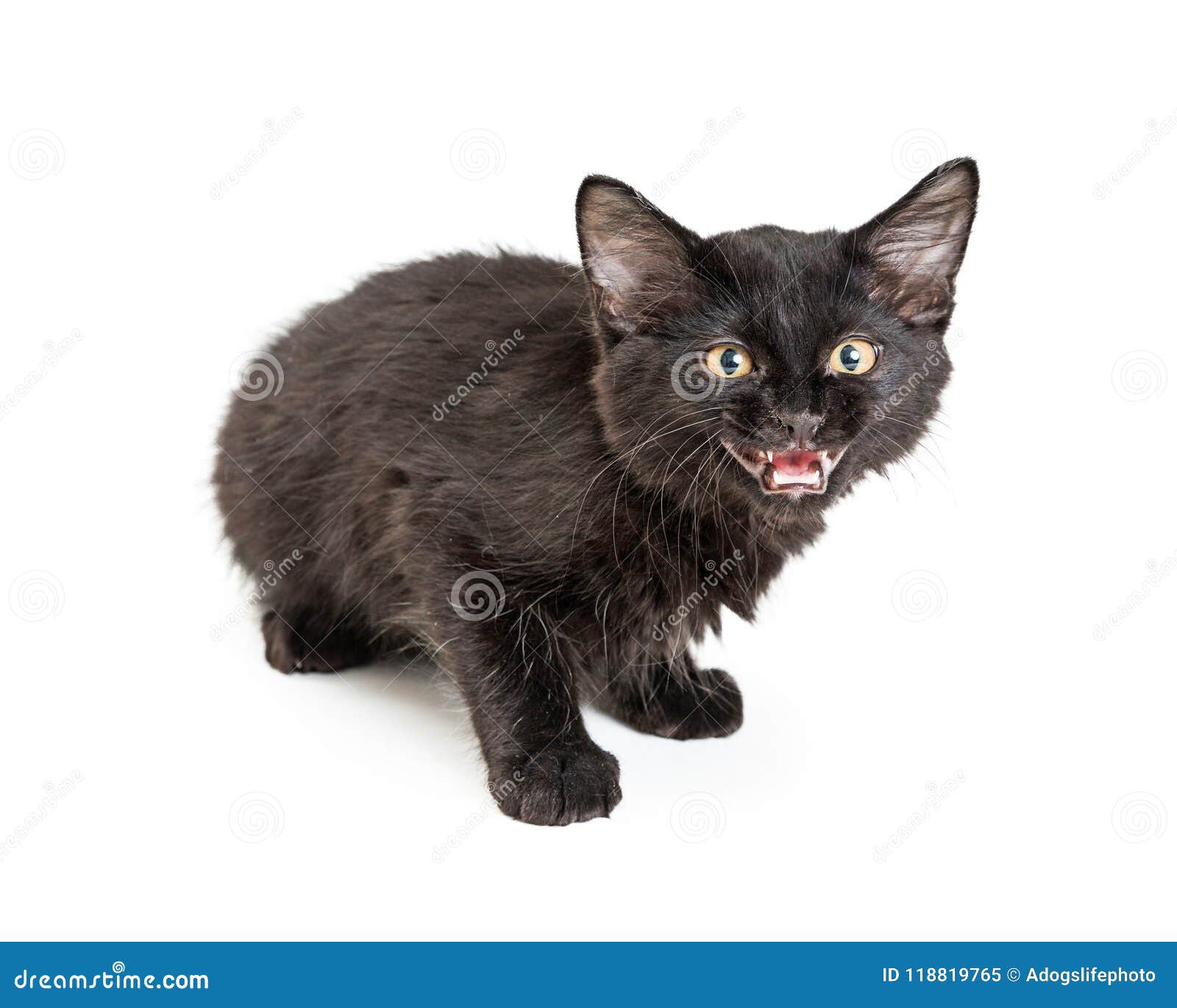 Erschrockene Schwarze Kitten Hissing Stockbild Bild Von Kitten Schwarze