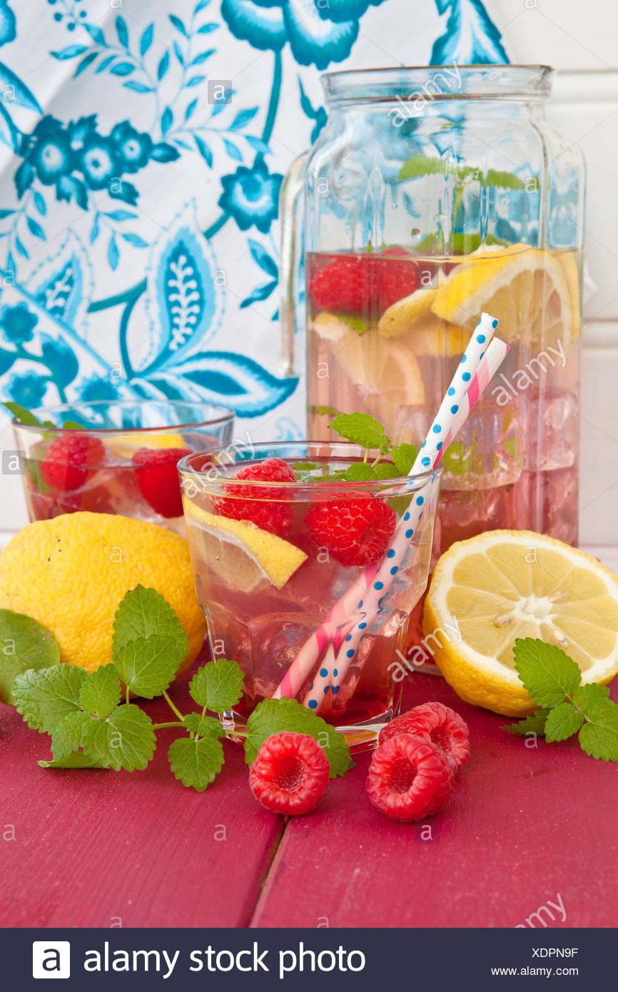 Hausgemachte Limonade Mit Himbeeren Und Zitrone Stock Photo Alamy