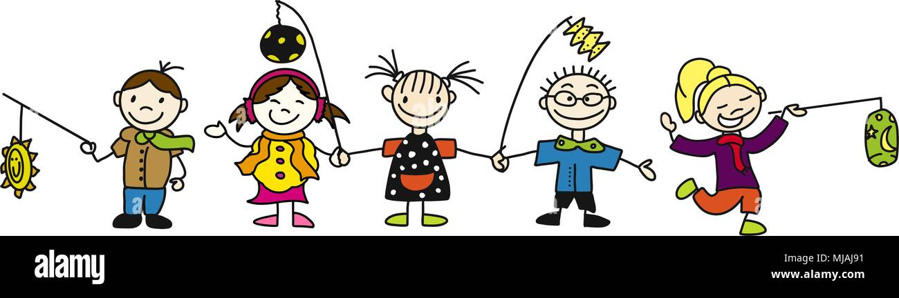 St Martin Laternenumzug Kindergarten Kinder Als Banner Freihandskizze Vektor Illustration Stock Vector Image Art Alamy
