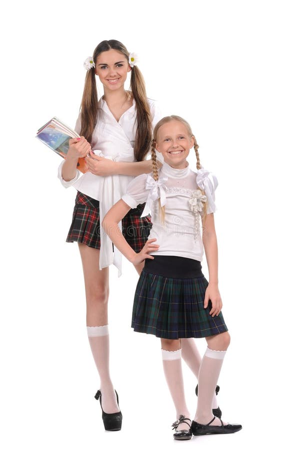 Lustige Schulmadchen Mit Buchern In Der Hand Stockfoto Bild Von Schulmadchen Buchern