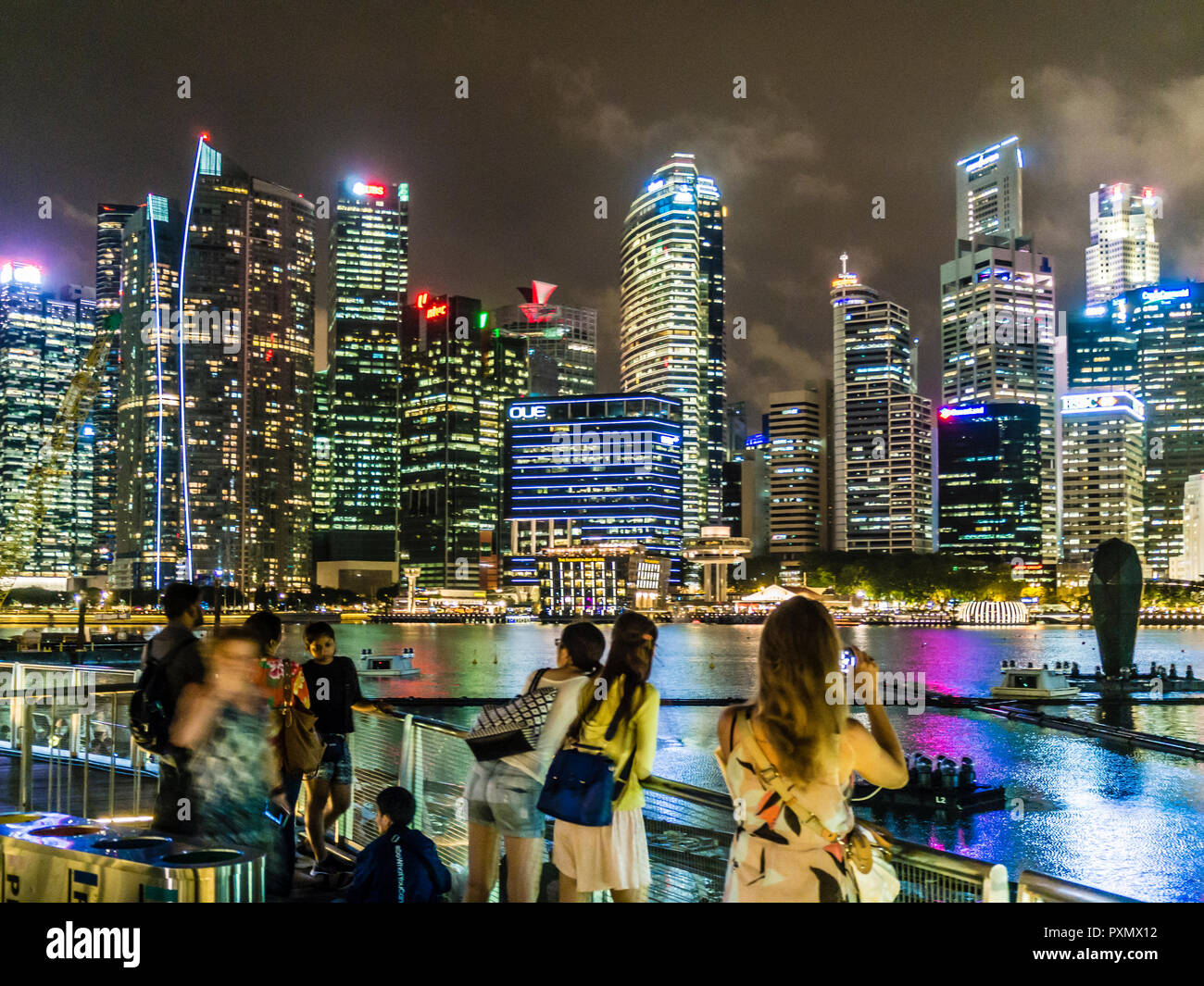 Tourists At Singapore Marina Bay Are Taking Pictures And Selfies In Front Of The City S Skyline Stock Photo Alamy