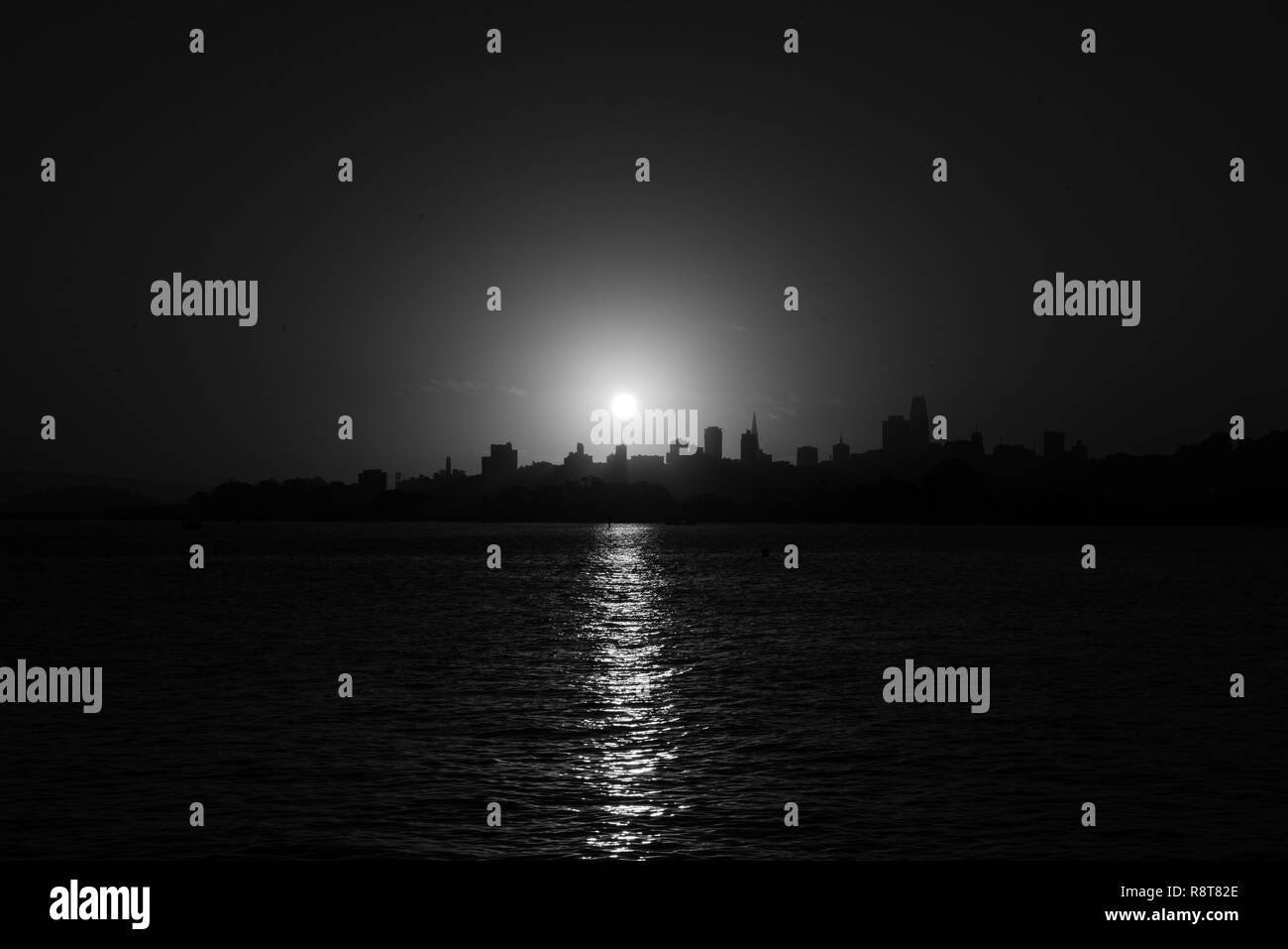 Schwarz Weiss Foto Von Den Sonnenaufgang Uber Der Innenstadt Von San Francisco Stockfotografie Alamy