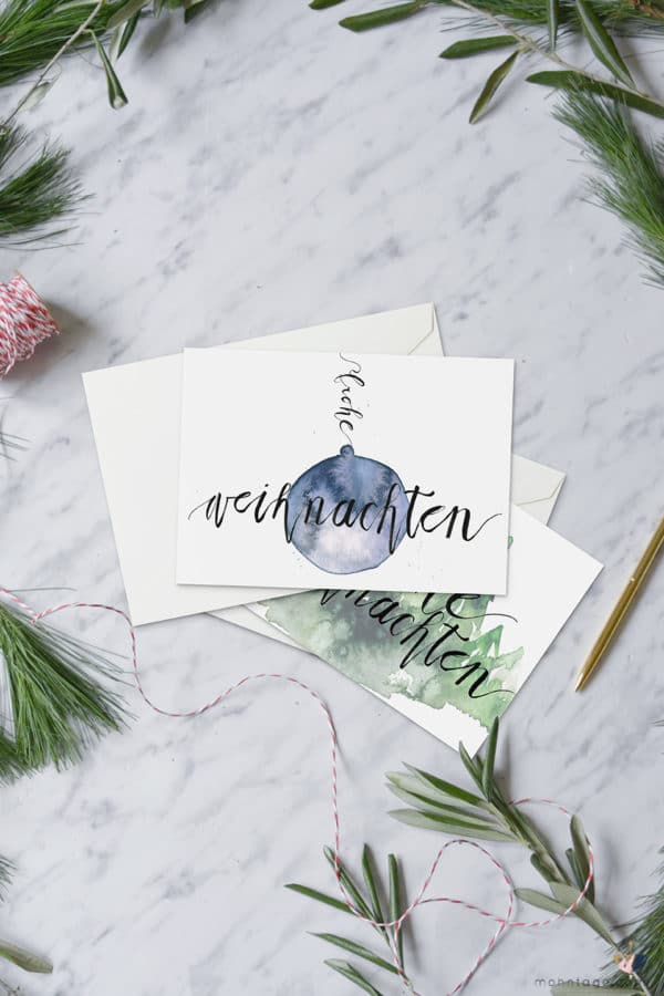 Aquarell Weihnachtskarten Selbst Machen Mit Handlettering Watercolor