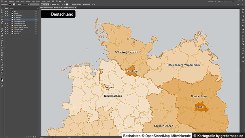 Administrative Karte Deutschland Vektor Grebemaps Kartographie