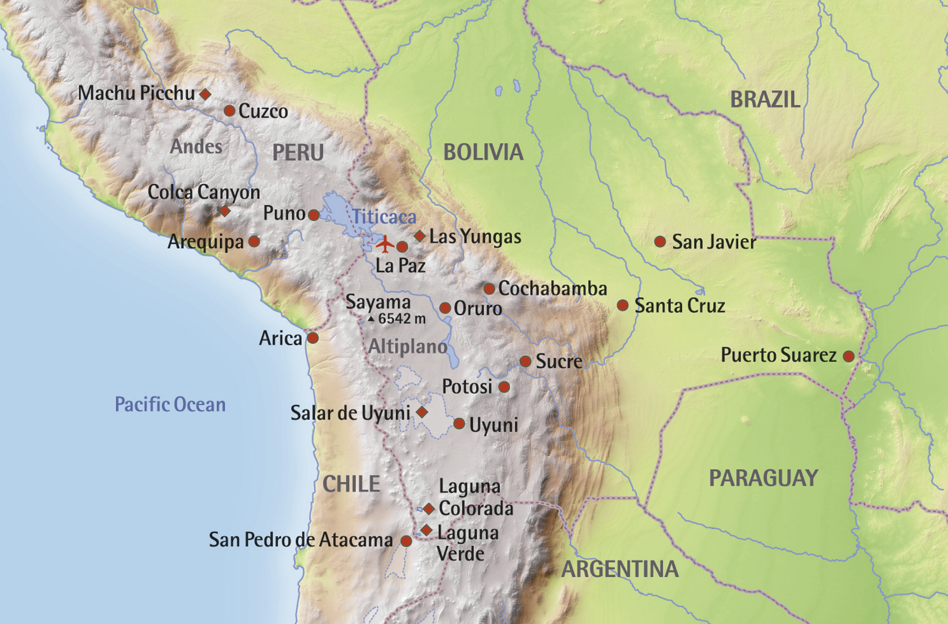 Karte Hohepunkte Des Andenstaats Bolivien Dorado Latin Tours
