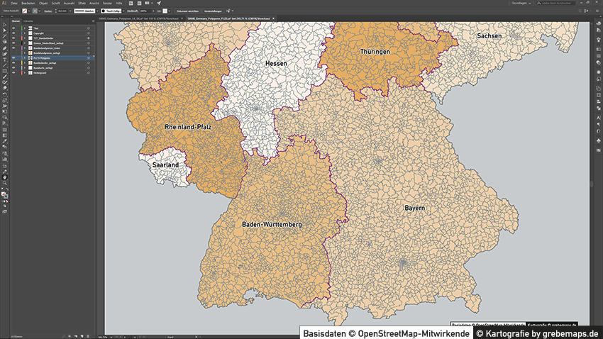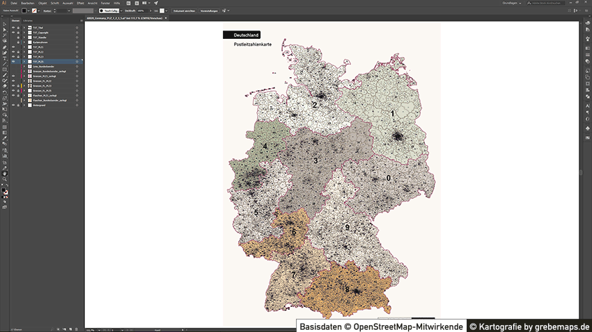 Postleitzahlenkarte Deutschland Vektor Illustrator Grebemaps