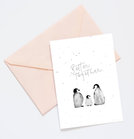 Postkarte Pinguin Familie Grusskarte Papeterie Etsy