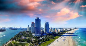 Miami Beach Florida Beautiful Panoramic Aerial View At Sunset Stock Image Image Of Buildings Architecture